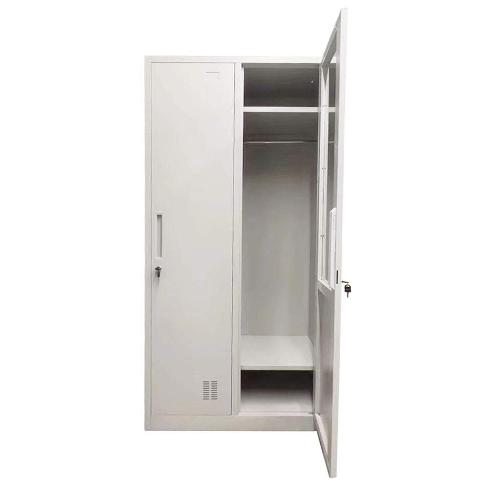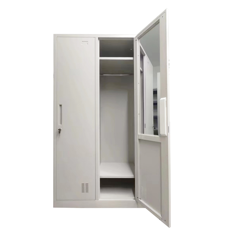 结构:整装,二门衣柜,每门内上部一块隔板,隔板下一根不锈钢衣杆,下部一块隔板,上下净空220mm,门内配镶嵌半身大穿衣镜。 热线电话:010-56877002