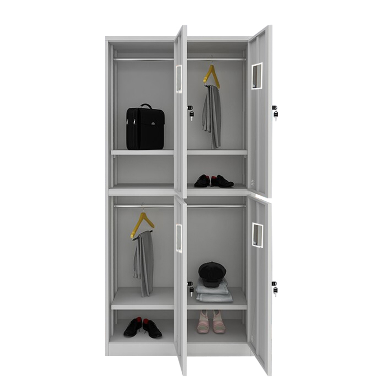 结构:整装,四门衣柜,每门内上部一根不锈钢衣杆,下部一块隔板,净空220mm,每门配挂式小镜子。 热线电话:010-56877002