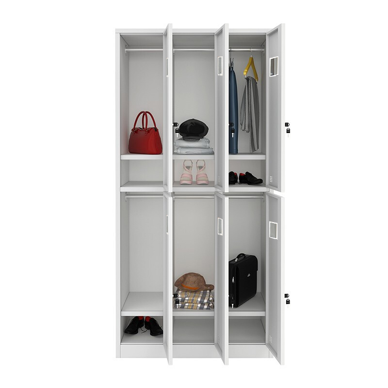 结构:整装,六门衣柜,每门内上部一根不锈钢衣杆,下部一块隔板,净空220mm,每门配挂式小镜子。 热线电话:010-56877002