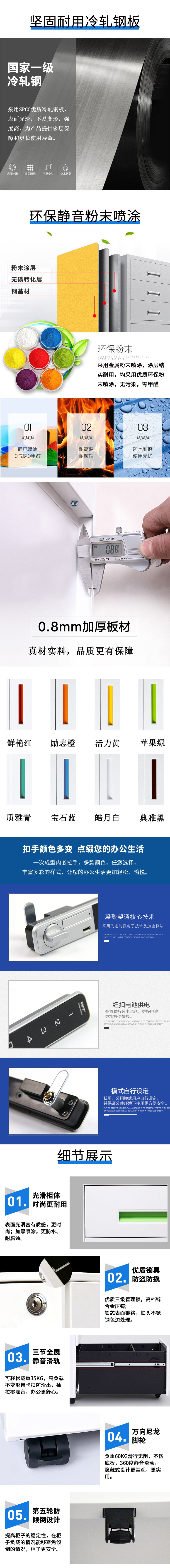 规格:400W*500D*625H 材质:一级冷轧钢板,厚度0.8mm 锁具:WT望通品牌1604电子触屏锁