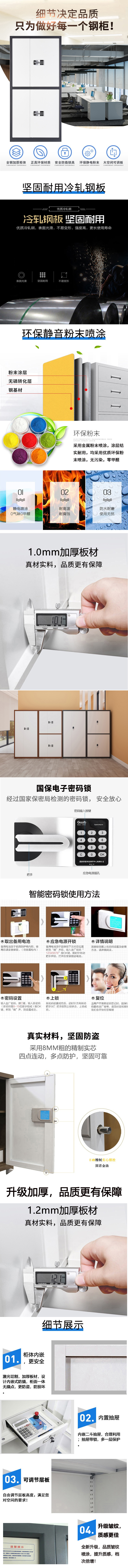 规格:900W*400D*1850H 材质:一级冷轧钢板,厚度1.0mm/1.2mm 锁具:广州“国保 ”品牌搬把按键大密码锁M103-21型。