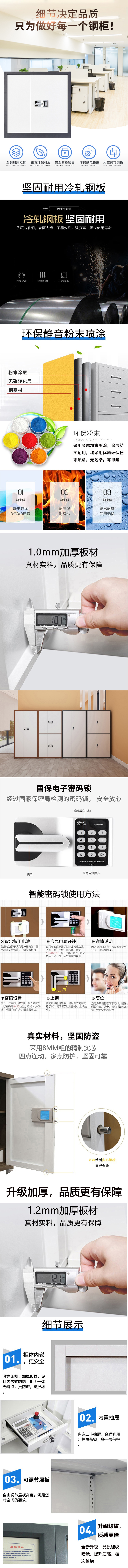 规格:900W*400D*1850H 材质:一级冷轧钢板,厚度1.0mm/1.2mm 锁具:广州“国保 ”品牌搬把按键大密码锁M103-21型。