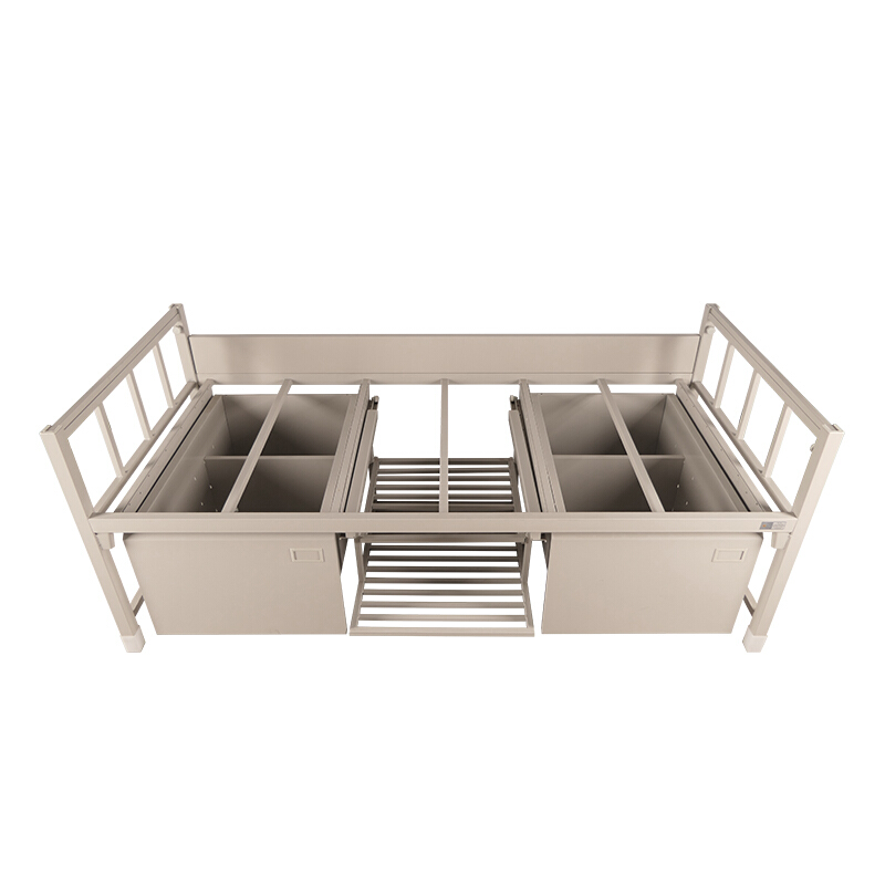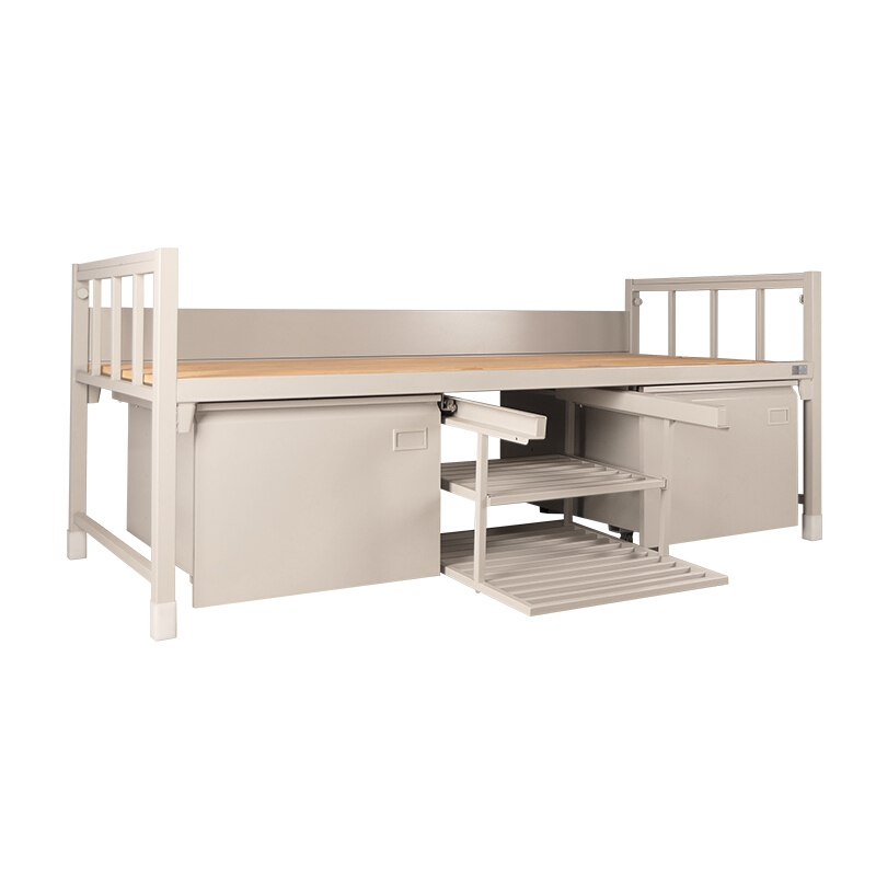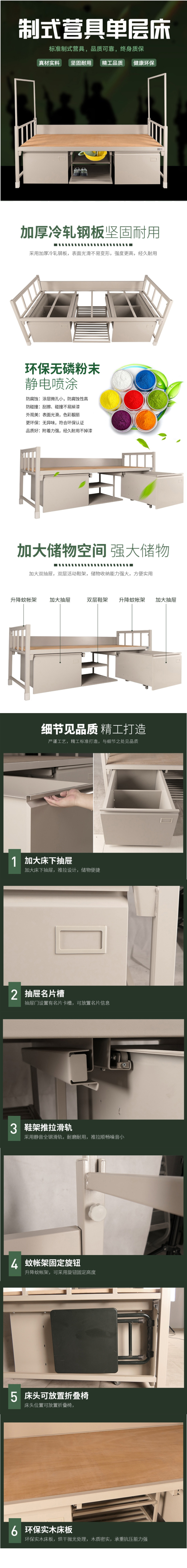 4、制式营具军用单人床床下抽屉:采用0.8mm厚冷轧钢板(钣金工艺成型);